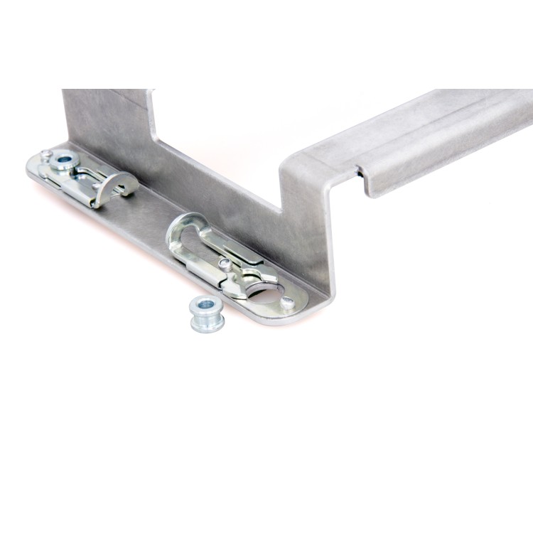 The customer will need to supply a metal or plastic sheet with four M4 bolts or rivets fitted in alignment with the clamp’s quick-release catches; or the bolts/rivets can be inserted directly into the vehicle chassis. The clamp then secures the HD2 onto the sheet or chassis, but removal is quick and easy by simply moving the catches back.